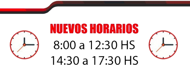 Horario: Lunes a Viernes de 8 a 12:30hs y de 14:30 a 17:30hs / Sabados de 8 a 12:30hs